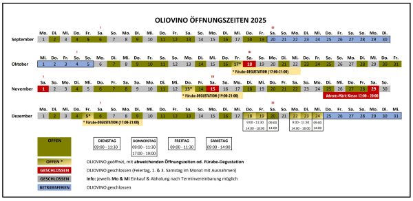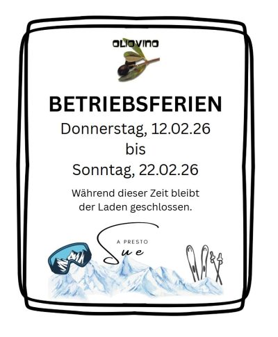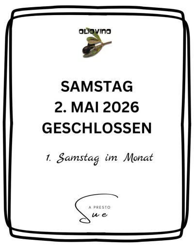 Am 1. und 3. Samstag im Monat bleibt das OLIOVINO geschlossen.